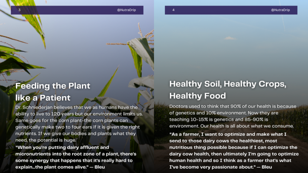 Bleu compares it to human health: “We genetically have the ability to live to 120 years, but our environment limits us. It’s the same with a corn plant—it can reach its potential if we give it the right environment.”