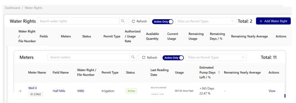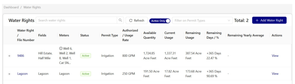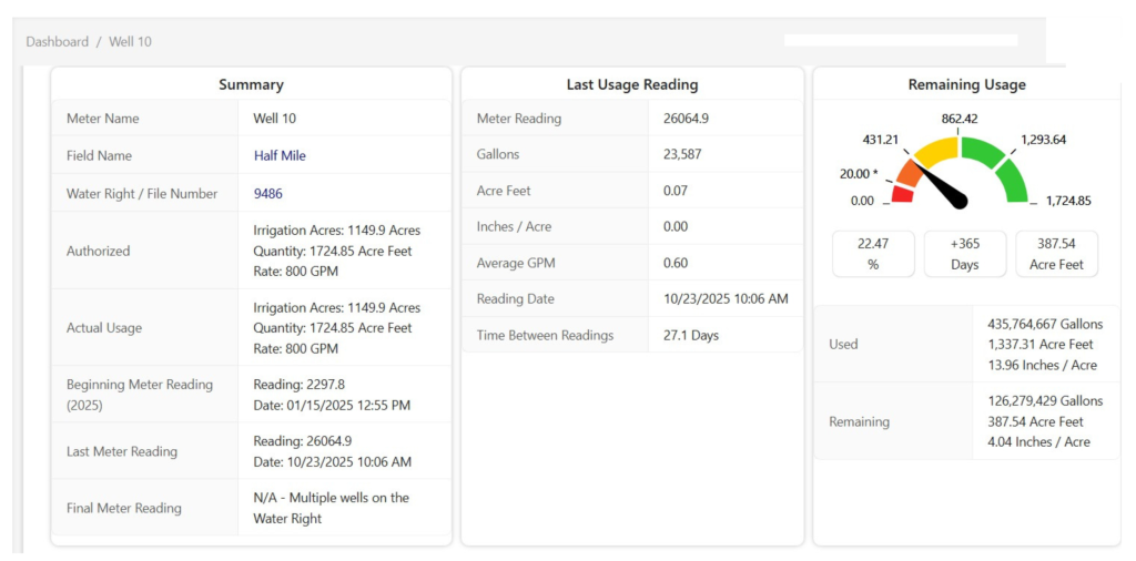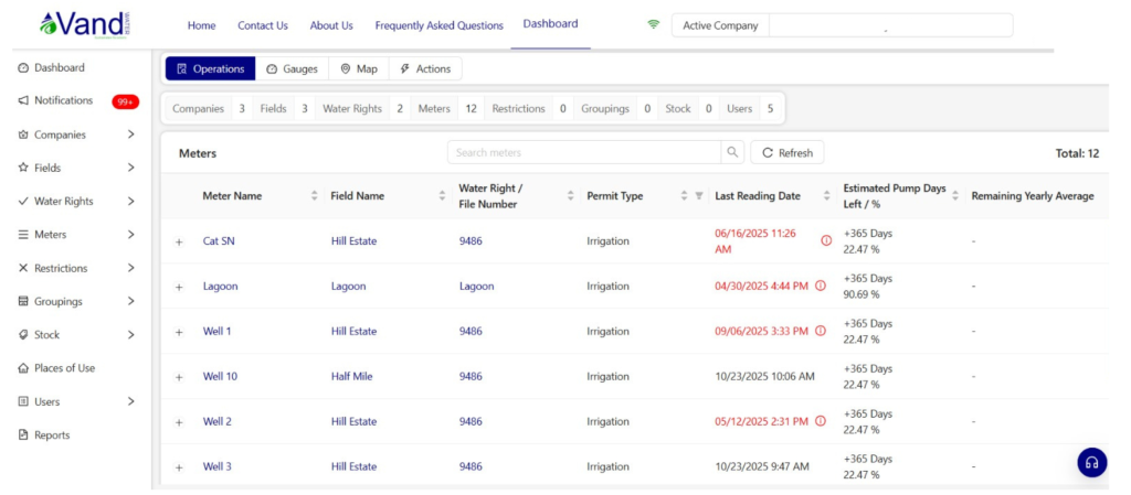 If you’re under water restrictions, VandWater can preload your limitations into the system—whether it’s an annual cap or a multi-year account. From there, you can track your water use as it counts down or counts up, giving you a live snapshot of where you stand.